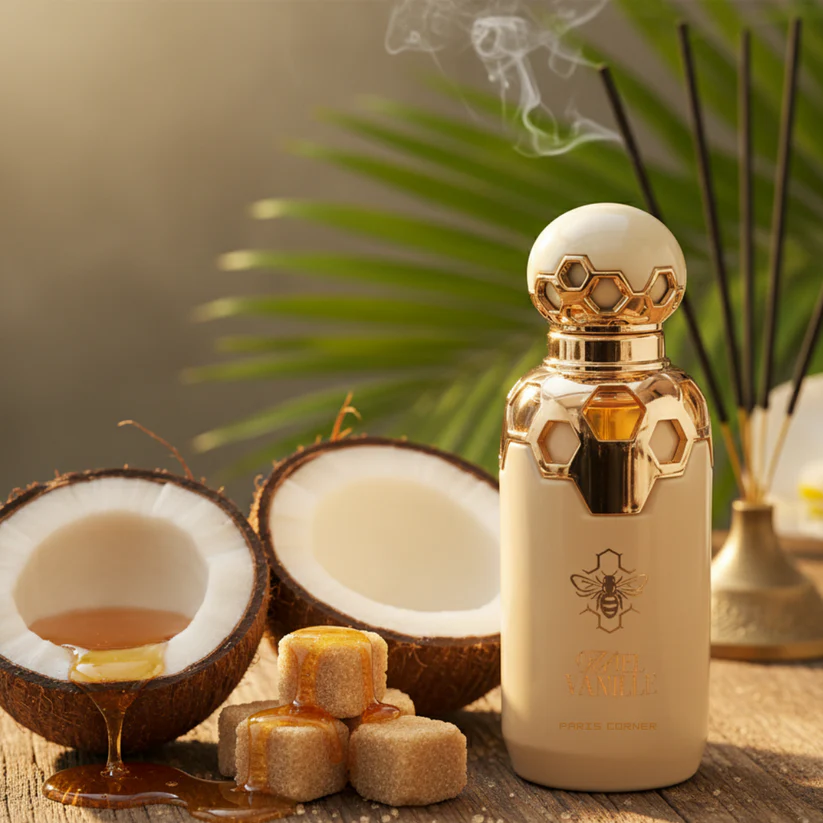 The base is dominated by vanilla, brown sugar and ambroxan, creating a lingering, sweet and highly seductive trail. This combination provides depth and longevity, making the Miel Vanille Paris Corner fragrance linger on the skin for hours.