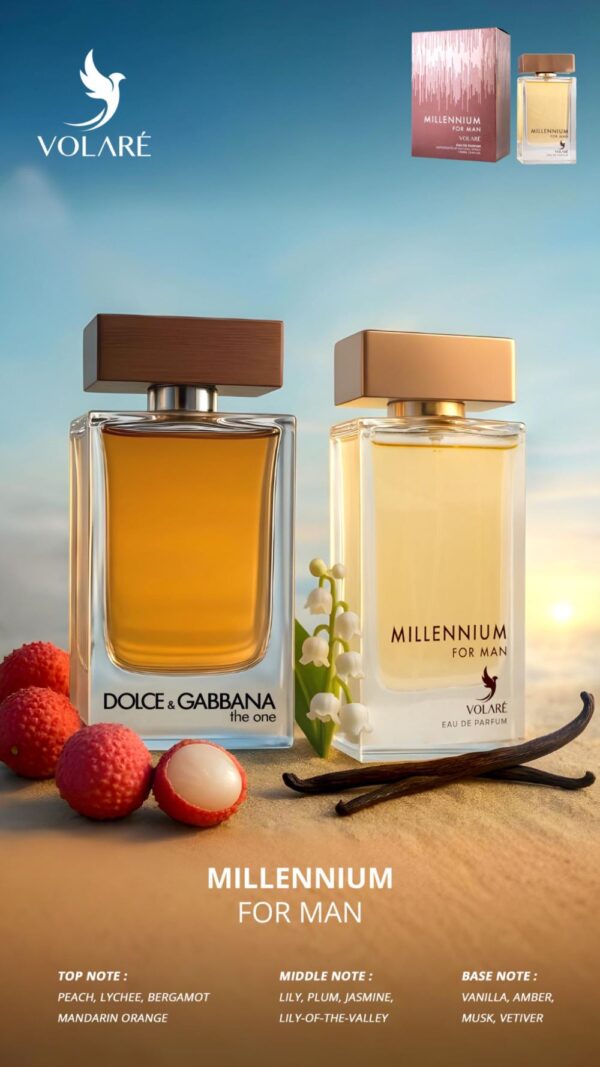 Volare Millennium Eau de Parfum is inspired by the unmistakable The One for Men by Dolce & Gabbana, reinterpreted in a more intense and sophisticated form.