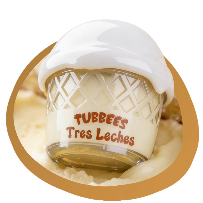 The base of Tres Leches Tubbees lip balm offers a warm and lingering sensation with sweet and exotic undertones that will envelop your lips all day long.